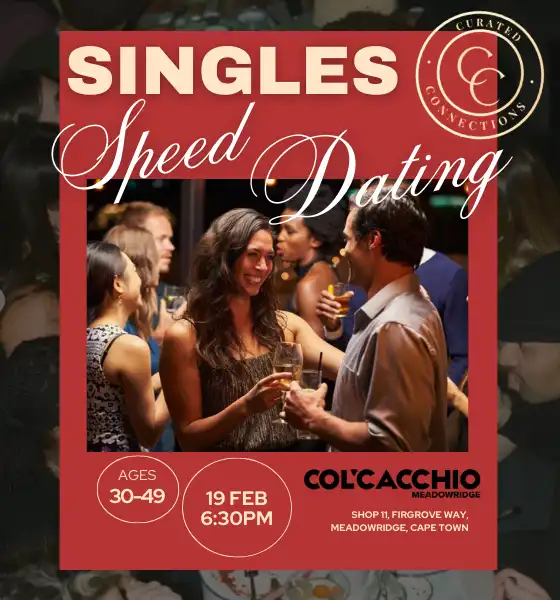Meet like-minded singles in a fun, safe and relaxed setting. We have regular events in Cape Town, Jo’burg, Pretoria, & Durban.