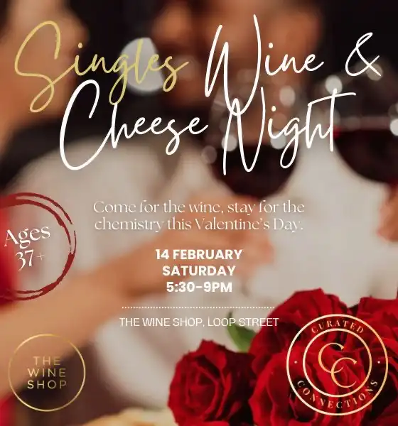 This Valentine’s Day, We bring you an elegant Singles Wine & Cheese Evening, curated especially for ages 37+ who appreciate good conversation, great company, and the finer things in life.