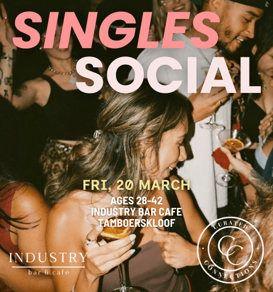 Join us for a Singles Social on Friday, the 20th of March at the new and trendy Industry Bar & Cafe in Tamboerskloof, where EVERYONE IS SINGLE! Come for the vibes, leave with connections!