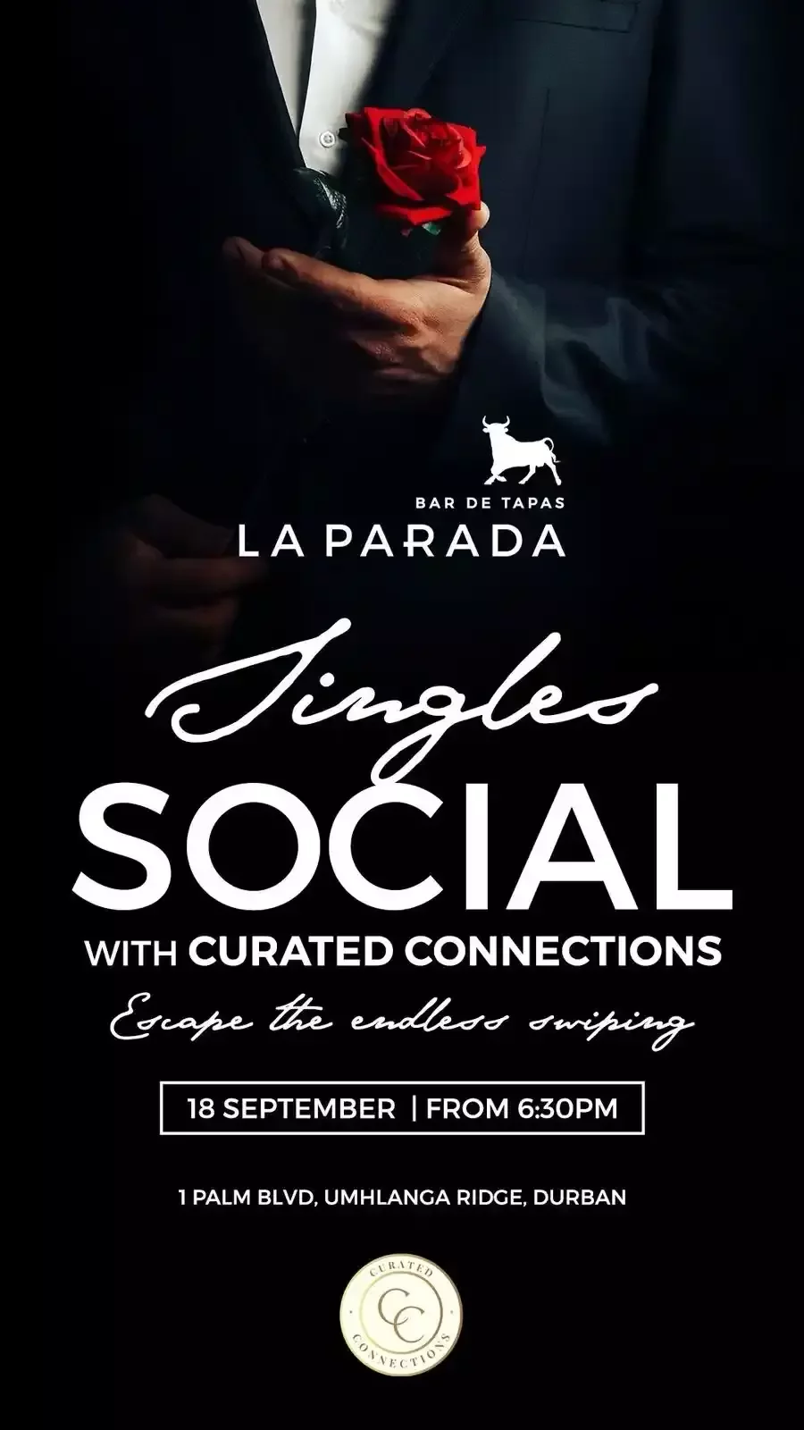 Join us for a Singles Social For Ages 27-45. Hosted at La Parada in Umhlanga.